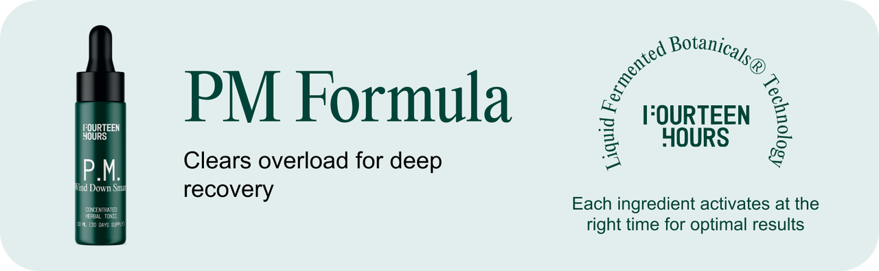 Your reset begins. Fourteen Hours starts to rebalance neurotransmitters by gently reducing excess glutamate — easing overstimulation and preparing your brain for clearer thinking and reduced fatigue.