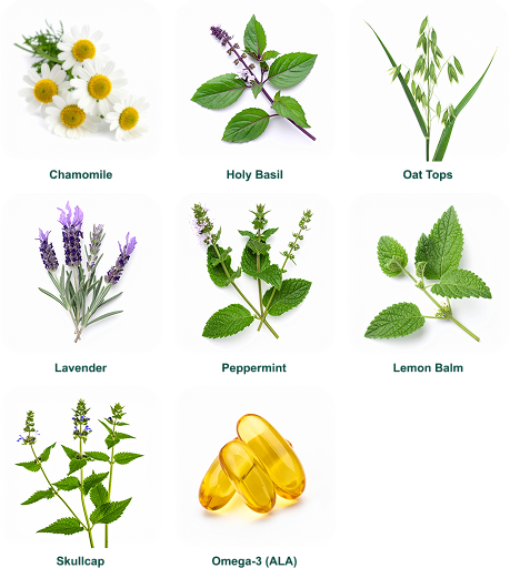 Lemon Balm: Regulates neurotransmitters for mental reset