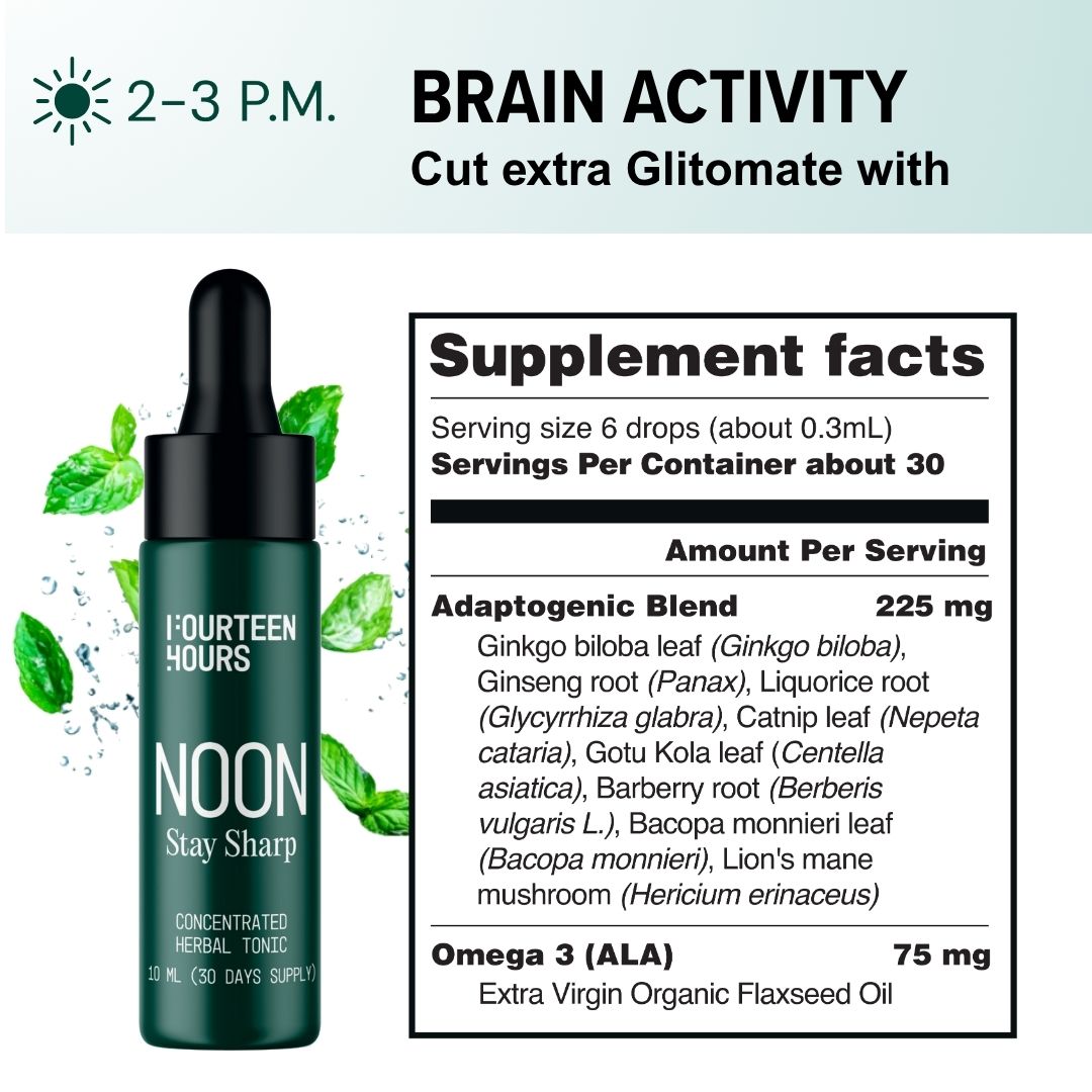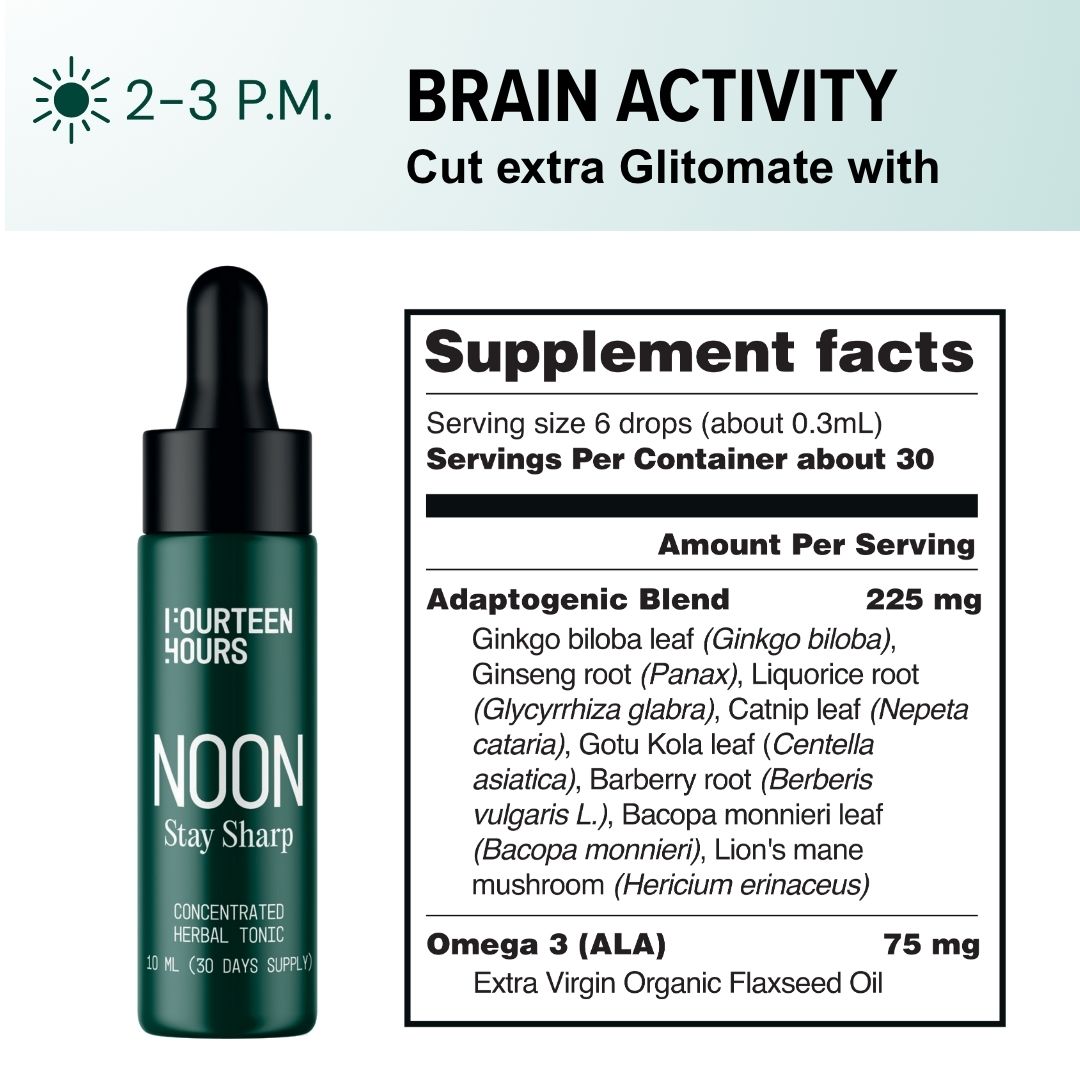 Cut through brain fog and stay mentally sharp during the midday dip. At this time, excessglutamatebuilds up, leading to fatigue and poor decisions.