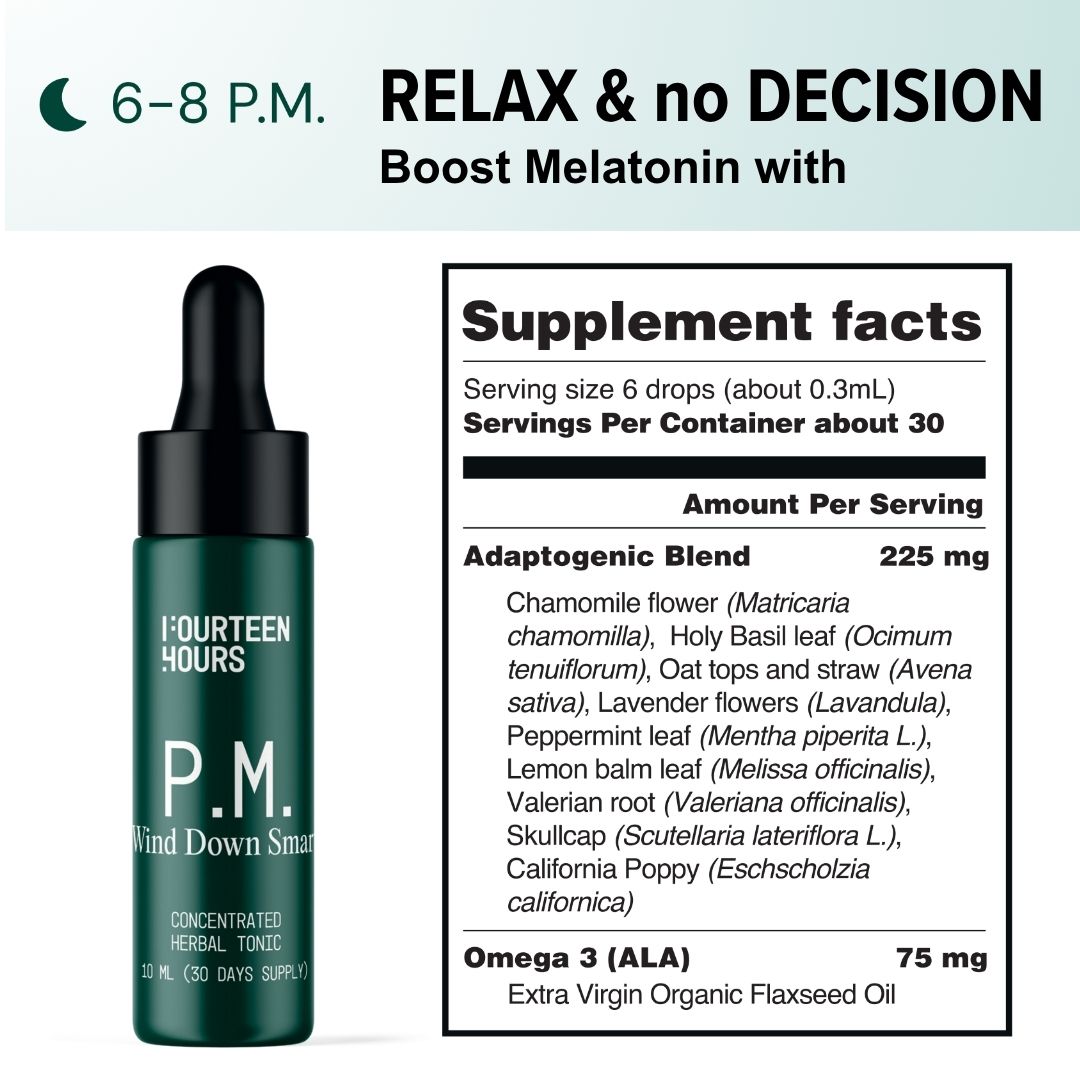 Fourteen Hours supports your brain across the three core regulatory moments of the day (morning, noon, evening) to think faster, remember more and stay focused longer.