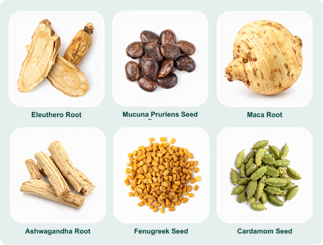 Ashwagandha, Eleuthero, Macasupport DHEA for clarity and drive