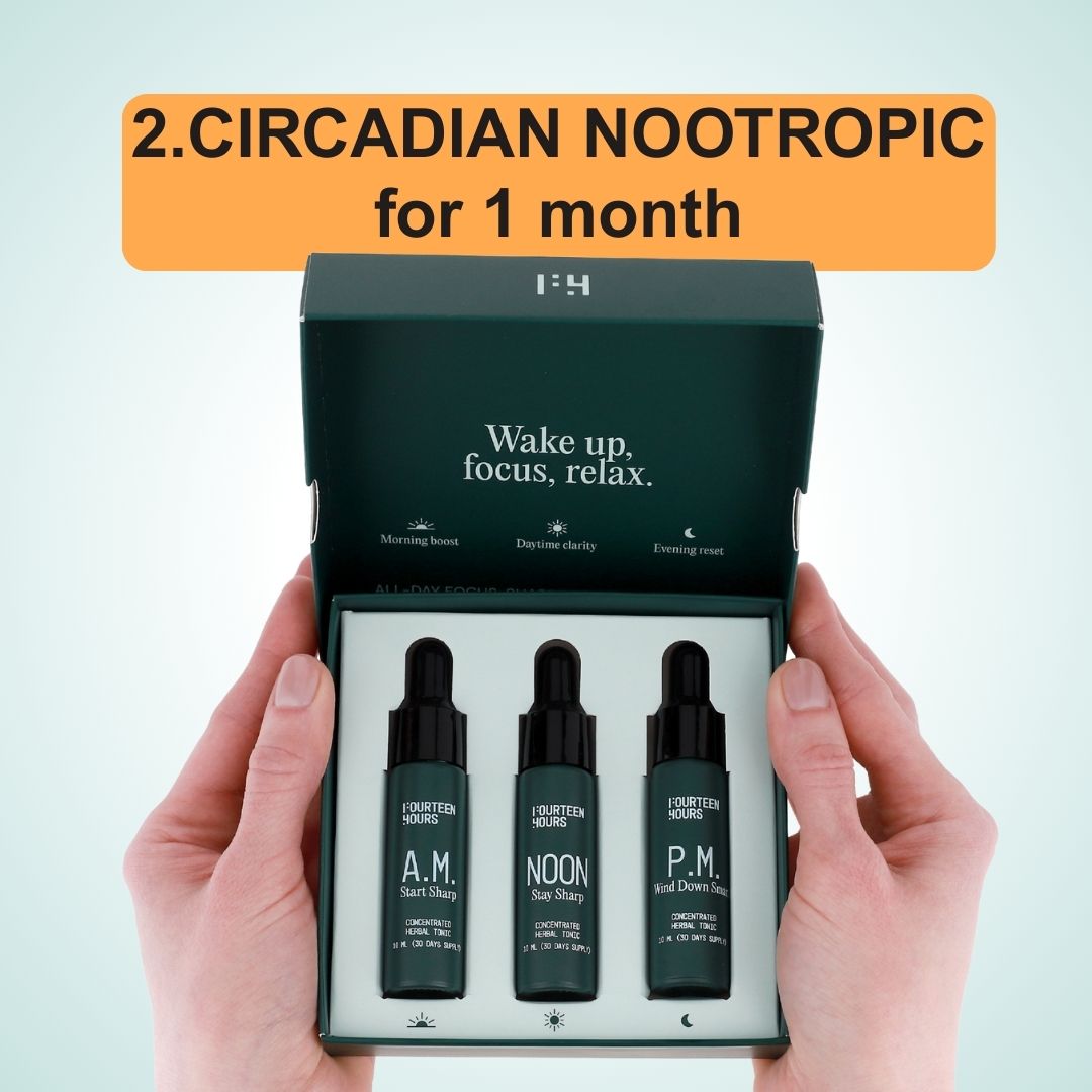 Fourteen Hours Circadian Nootropics (AM / NOON / PM) are designed to elevate the three core pillars behind your Readiness Score: